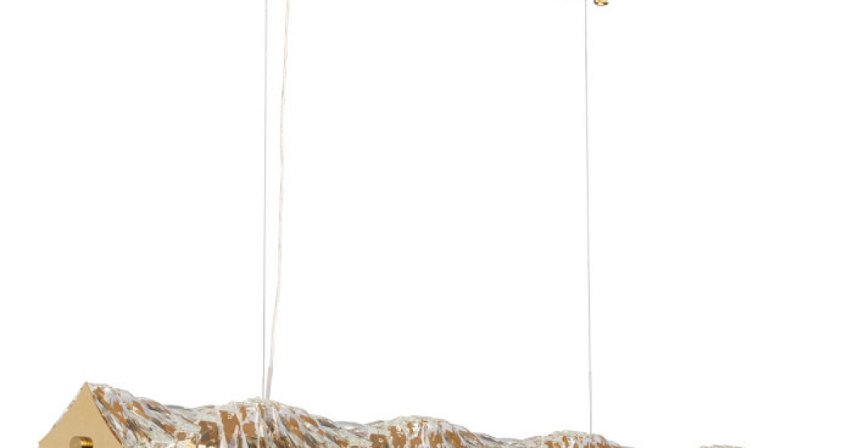 Основание подвесной люстры выполнено из нержавеющей стали и гальванизировано в цвет золота. Люстра декорирована прозрачным хрусталем прямоугольной формы.