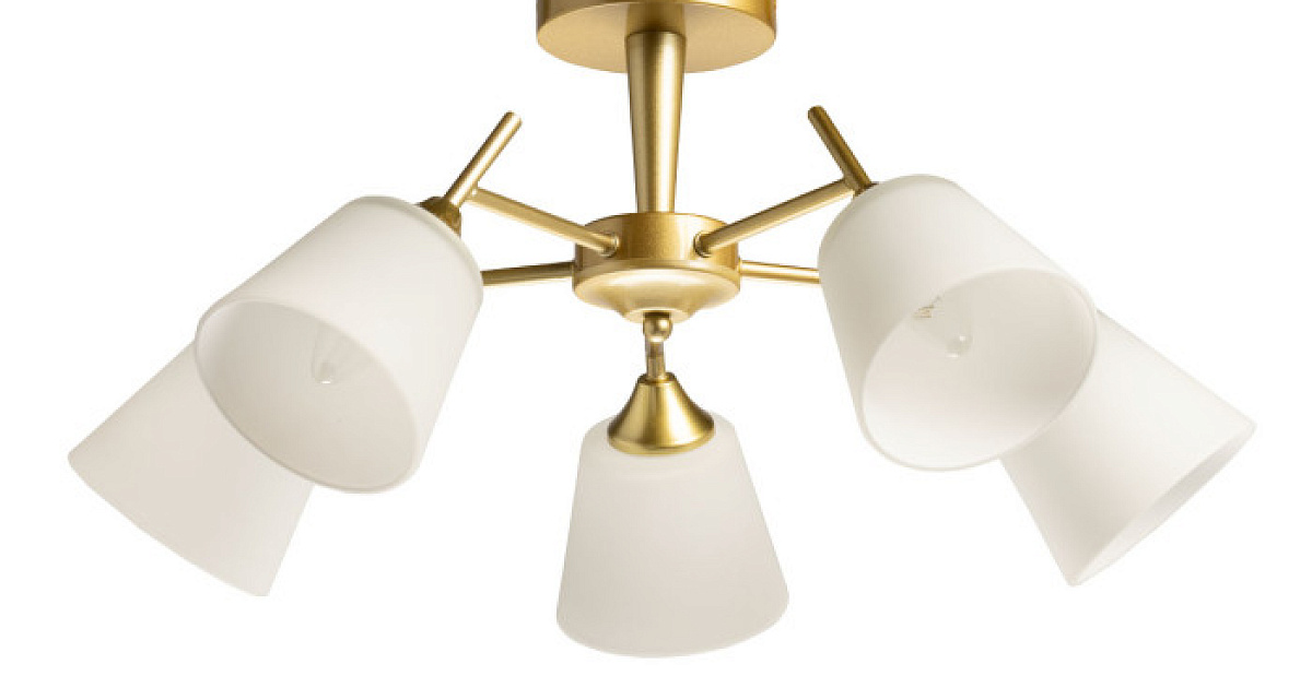 Основания цвета золота придает светильнику изысканный вид, что делает его подходящим для различных интерьеров, от классических до современных. Белые матированные плафоны создают мягкое и равномерное освещение, которое не вызывает усталости глаз. Компактная высота светильника оптимальна для стандартной высоты потолка. Заменяемые источники света удобны в эксплуатации.