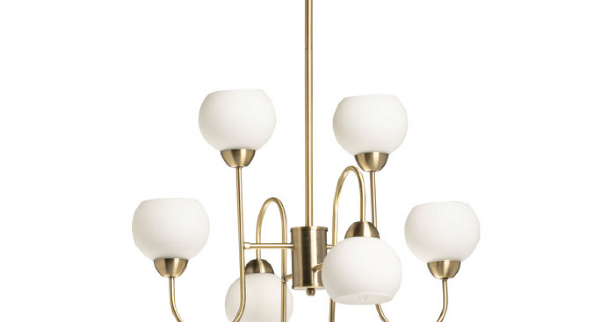Актуальный цвет латуни придает люстре благородства и изящности. Стеклянные плафоны белого цвета создают мягкое комфортное освещение. Разнонаправленное расположение плафонов позволяет ярко осветить комнату. Заменяемые источники света удобны в эксплуатации.