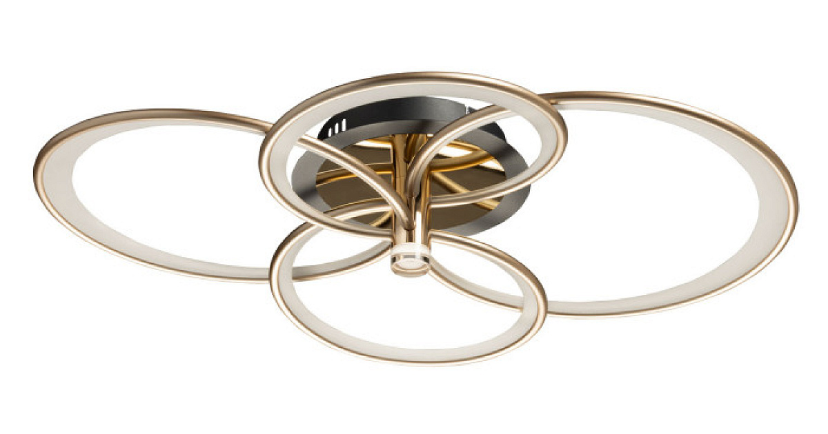 Контрастное сочетание глубокого черного цвета и благородного цвета золота эффектно выделяет люстру на потолке. Матовый акрил мягко рассеивает свет. Многорежимность с изменением цветовой температуры от 3000К до 6500К и яркости света является элементом светодизайна. Плавное диммирование позволяет регулировать интенсивность освещения. Качественные светодиоды обеспечивают яркое освещение и долгий срок службы. Наличие ПДУ позволяет управлять режимами освещения. Светодиодные источники света безопасны и экономичны. Компактные размеры светильника сохраняют пространство комнаты и подходят для стандартных потолков.