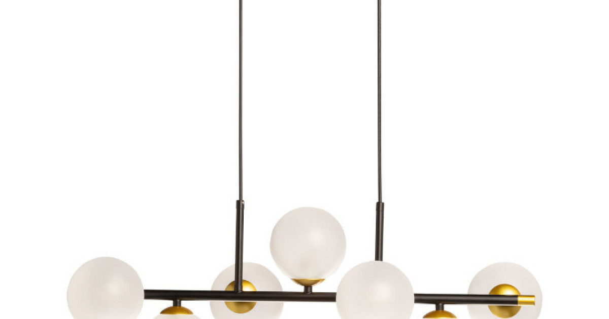 Глубокий черный цвет выгодно выделяет люстру на потолке. Гармоничное сочетание черного и золотого цветов, фактур и форм делает эту люстру ярким акцентом в интерьере. Ассиметричное расположение стеклянных плафонов придает люстре индивидуальность. Матированные плафоны мягко рассеивают свет и создают комфортное освещение. Заменяемые источники света удобны в эксплуатации. Возможность регулировать комфортную высоту.