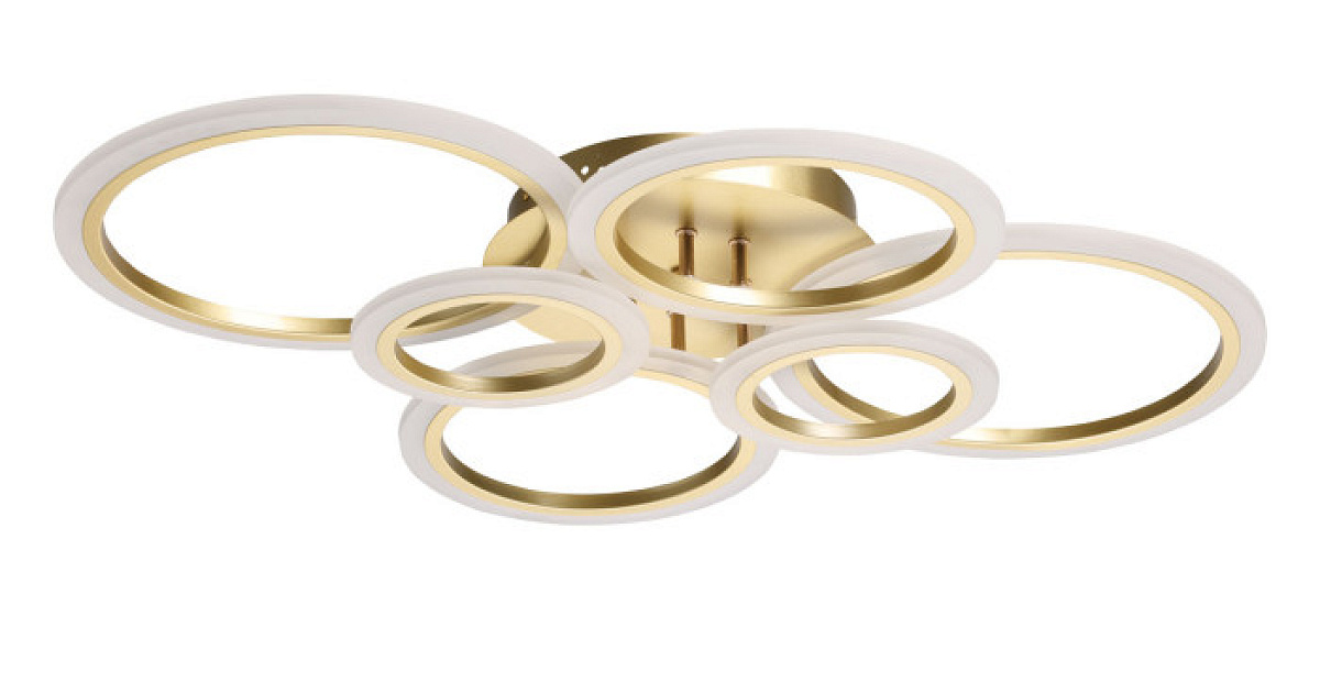 Многорежимность с изменением цветовой температуры и яркости света является элементом светодизайна. Качественные светодиоды обеспечивают яркое освещение и долгий срок службы. Наличие ПДУ позволяет управлять режимами освещения. Модный цвет матового золота придает потолочной люстре элегантности. Строгая геометрия, сочетание окружностей в тренде. Компактный светильник для стандартной высоты потолка.