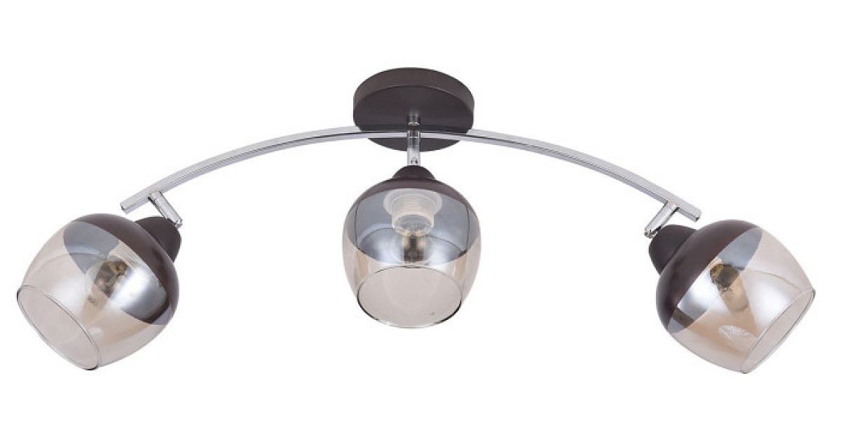 Оригинальная комбинация трендового коричневого цвета и цвета хрома и фактур поверхностей. Эргономичные стеклянные плафоны частично матированы в коричневый цвет и цвет топаза. Поворот плафонов регулирует распределение светового потока. Конструкция обеспечивает хорошую освещенность рабочей зоны. Заменяемые источники света удобны в эксплуатации.