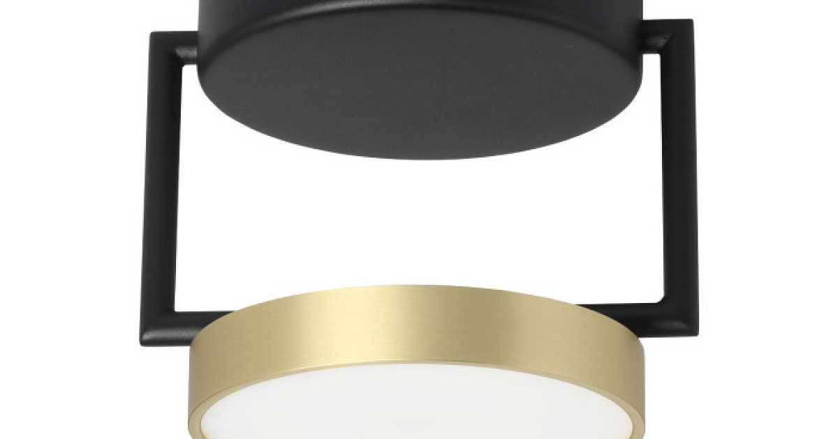 Металлическое основание потолочного светильника обработано по технологии порошкового окрашивания в черный цвет. Корпус плафона гальванизирован в цвет золота. Светодиодные источники света закрыты белым матовым акрилом.