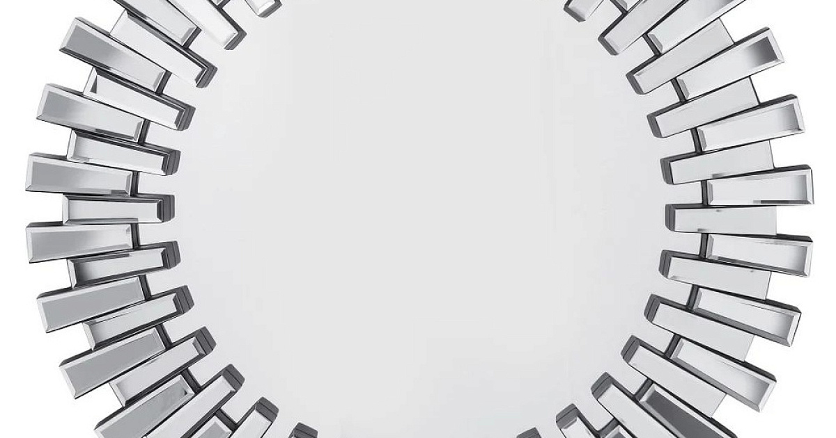 Круглое настенное зеркало формата XL с зеркальной рамой - вдохновлено сокровищницей форм солнечных зеркал. Но здесь в ультра-крутом варианте.