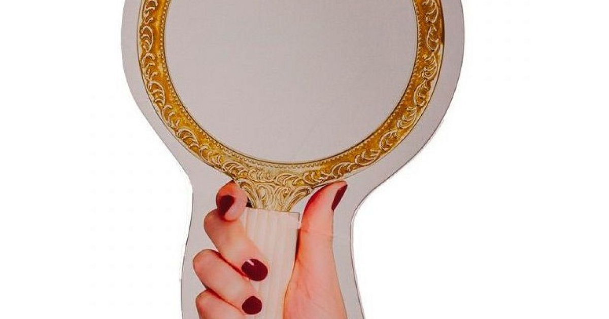 Рука наблюдателя проходит через зеркало, пока не станет его частью. Саркастический винтаж, на самом деле совершенно современный.