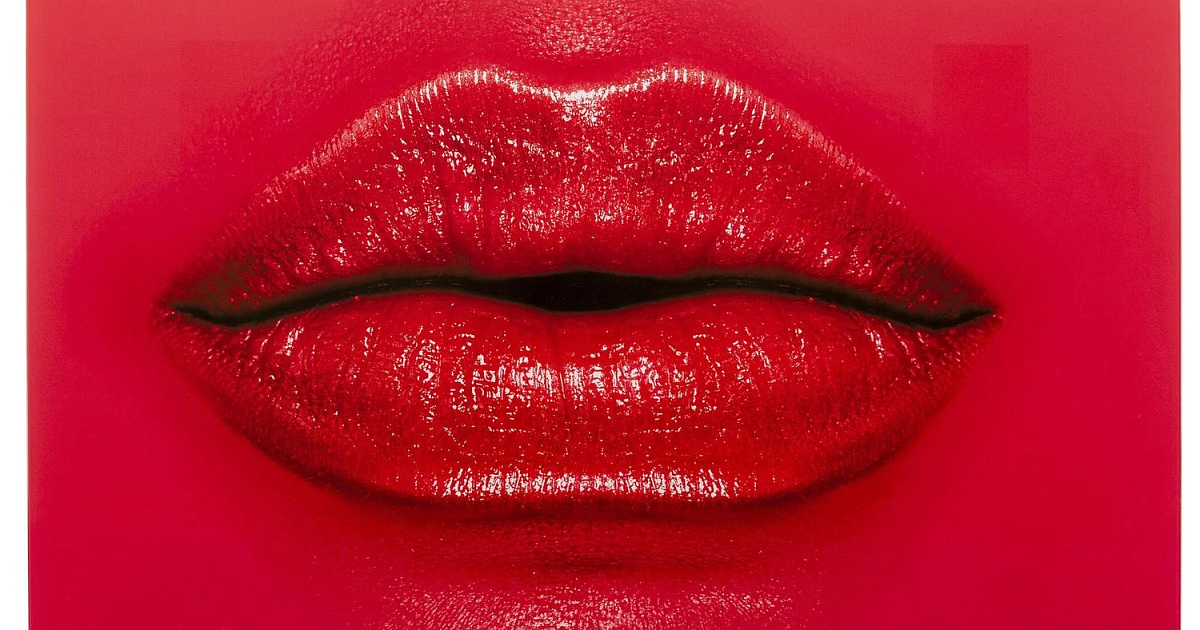 Большое стеклянное изображение с изображением губ в красном цвете.