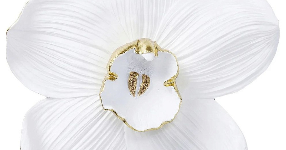 Почти натуральное цветение орхидеи станет украшением любого помещения. Яркий, необычный и элегантный, выполненный вручную и расписанный вручную цветок благородного белого цвета искусно подчеркивает каждую стену и становится абсолютным центром внимания в вашем доме. Цветочный декор стен также хорошо смотрится на окрашенной стене. Золотистые акценты создают приятные контрасты, которые придают цветочному декору яркое выражение.