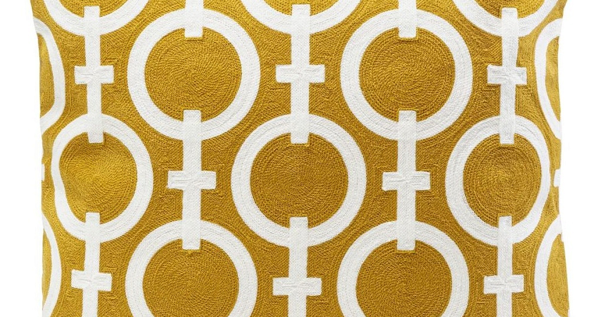 Квадратная подушка для дивана с белым и желтым графическим рисунком с размерами.