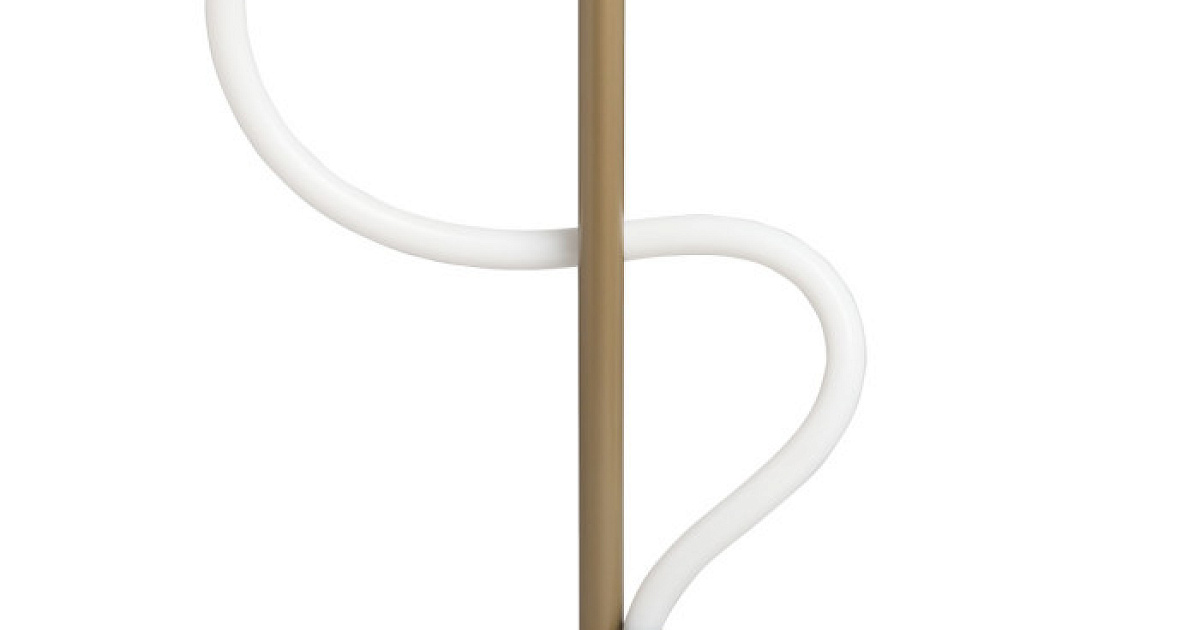 Металлическое основание настольной лампы окрашено в цвет перламутрового золота. Гибкий плафон настенного бра выполнен из белого матового силикона.