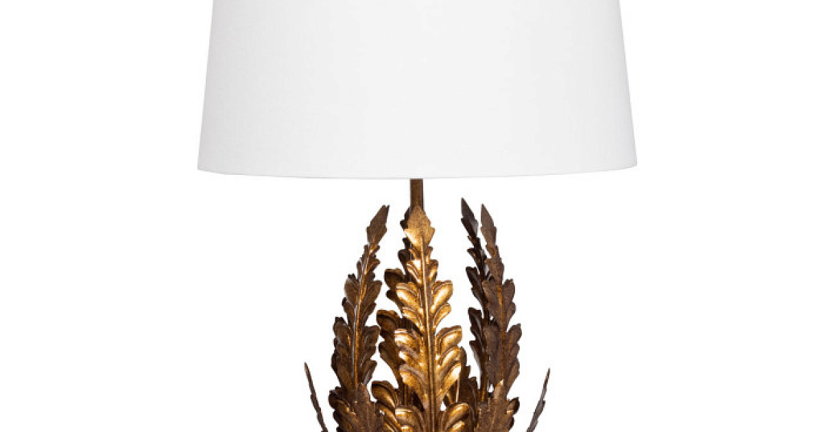 Гальваника в цвете античное золото с нанесением патины кофейного цвета придает настольной лампе шарма и элегантности. Чтобы придать настольной лампе еще больше изысканности используется декор в виде листьев сложной формы. Общий классический дизайн поддержан стильным абажуром белого цвета.