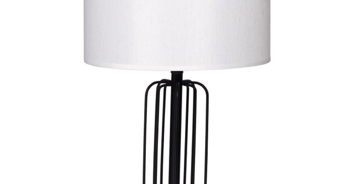 Металлическое основание настольной лампы окрашено в черный цвет. Традиционный источник света закрыт двухслойным текстильным абажуром белого цвета. С внутренней стороны текстиль защищен термостойким акрилом. Абажур прошит.