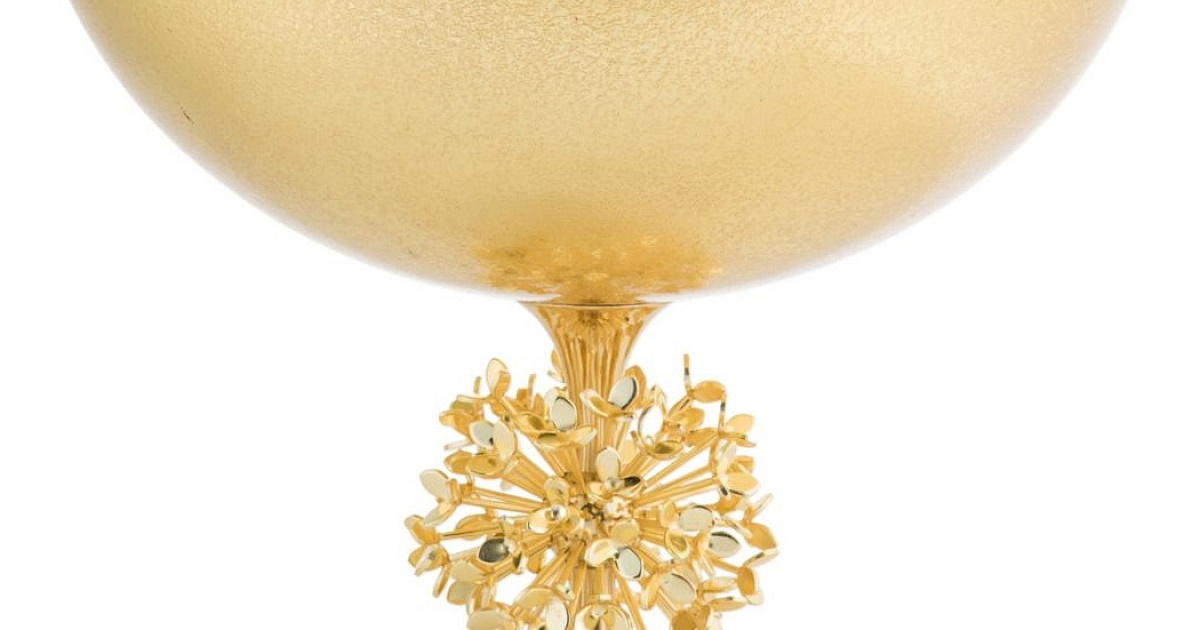 Чёткая геометрия форм, чистые цвета и неожиданный декор в виде пушистой шапки одуванчика – всё это о чаше из одноименной коллекции Michael Aram. Дизайнер использует сочетание разных по структуре материалов, чтобы добиться ощущения роскоши, не перегружая при этом внешний вид изделия. Майкл Арам филигранно играет с оттенками и фактурами. Стенки чаши оформлены в матовом золоте, а внутренняя поверхность представлена зеркальной нержавеющей сталью. Заключительный аккорд – эффектный цветок на ножке и основание из благородного мрамора.