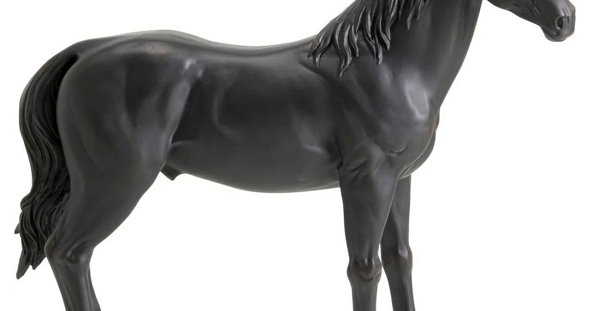 Эта скульптура лошади поражает своей мощной осанкой, детализированным мастерством и матово-черной отделкой.