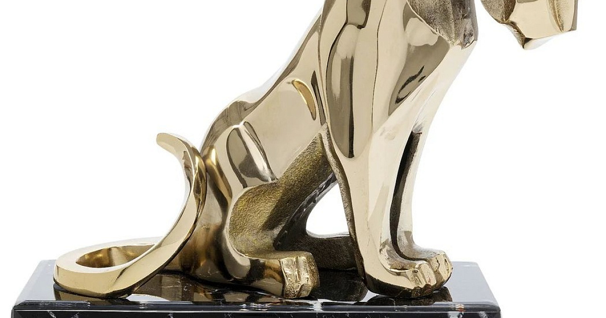 Декор в вашем доме имеет решающее значение, потому что предметы и фигурки по вашему выбору выражают вашу индивидуальность. С фигурой льва вы сделаете реальное заявление. В конце концов, Король зверей олицетворяет силу, уверенность в себе и сильную внешность. Золотая фигурка животного - это не только идеальное украшение для тех, кто родился под знаком зодиака Лев. Золотая большая кошка на основании из черного мрамора мгновенно придает элегантность мебели, подоконнику и каминной полке. Материалы: алюминий, основание: стекло, покрытое пленкой, облицовано МДФ.