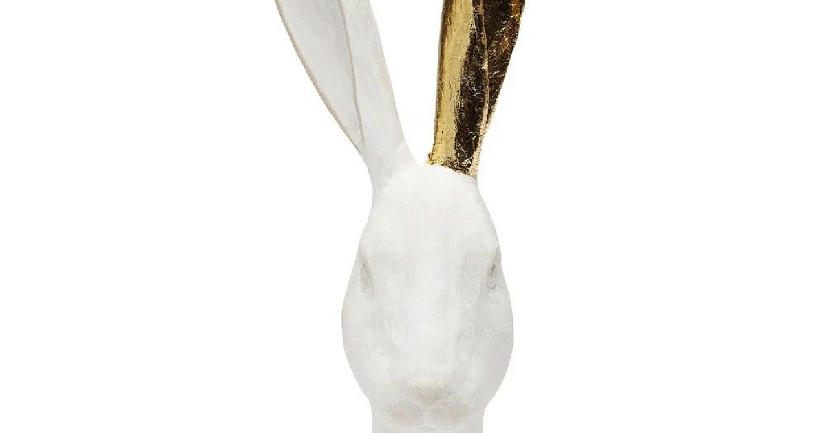 Эта голова белого кролика с золотыми деталями привносит в интерьер гламур и жизнерадостность.