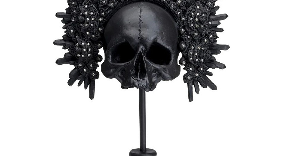 Вдохновленный художником Дэмиеном Херстом: его скульптура черепа была одним из самых дорогих произведений искусства современности. Этот декоративный предмет меняет тему в стиле антиквариата и выглядит как находка с блошиного рынка, увенчанная королевским головным убором.
