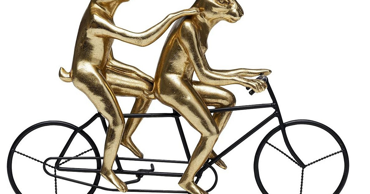Золотые кролики должны крутить педали в одинаковом темпе - иначе это не сработает. Или: вместе все идет легче! Какое прекрасное послание посылает эта скульптура кролика в качестве подарка на свадьбу или просто так для дорогого человека. И дело не только в том, что сообщение правильное – дизайн просто поражает воображение.