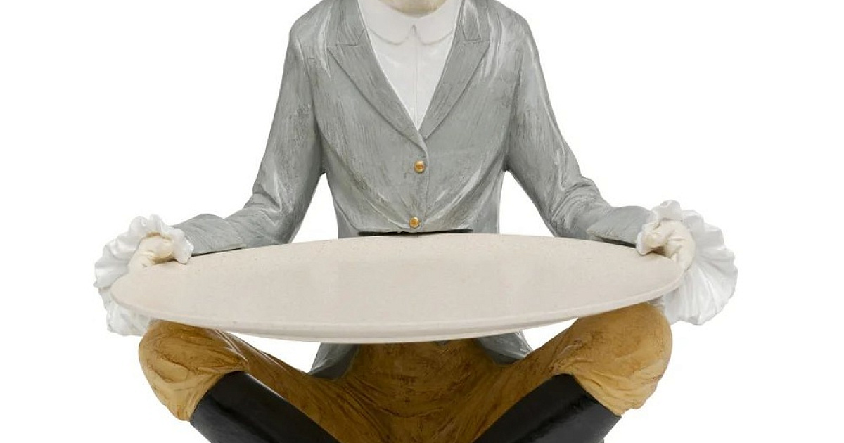 Покладистый дворецкий – обаятельный, практичный и абсолютно чувствительный к стилю. Эта декоративная статуэтка привносит в повседневную жизнь не только индивидуальность, но и порядок с помощью элегантно одетого бархатного подноса для собак. Будь то полка для ключей в прихожей, подставка для украшений на комоде или забавный аксессуар в гостиной – здесь функциональность сочетается с фантазией. Особенно эффектен в качестве контраста с чистым интерьером или дополнения к другим объектам дизайна с изображением животных. Продуманная до мелочей отделка делает этот аксессуар настоящим фаворитом для тех, кто ценит декоративные элементы с характером.