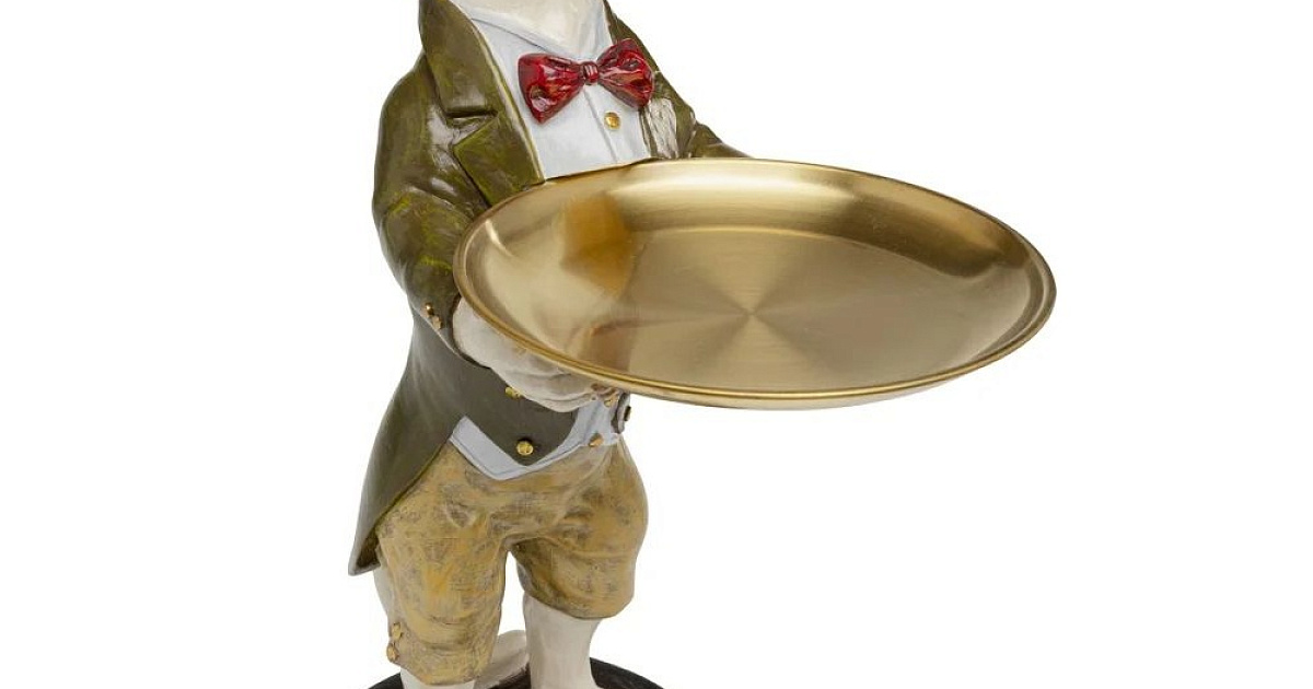 Покладистый дворецкий – обаятельный, практичный и абсолютно чувствительный к стилю. Эта декоративная статуэтка привносит в повседневную жизнь не только индивидуальность, но и порядок с помощью элегантно одетого бархатного подноса для собак. Будь то полка для ключей в прихожей, подставка для украшений на комоде или забавный аксессуар в гостиной – здесь функциональность сочетается с фантазией. Особенно эффектен в качестве контраста с чистым интерьером или дополнения к другим объектам дизайна с изображением животных. Продуманная до мелочей отделка делает этот аксессуар настоящим фаворитом для тех, кто ценит декоративные элементы с характером.