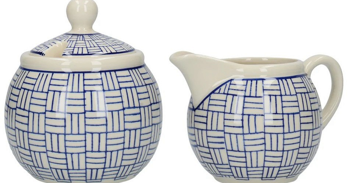 Ни одна чашка чая или кофе не обходится без капель молока или ложечки сахара. Поэтому подавайте их в идеально подобранном стиле с помощью набора для сахара и сливок London Pottery из серии Blue. Этот красивый набор состоит из двух предметов: белой сахарницы и молочника. Каждый из них украшен замысловатым голубым узором в виде решетки, разработанным ведущим керамистом и директором лондонской керамической мастерской Дэвидом Берчем. Однако этот набор кувшинов для молока и сахара не только станет элегантным дополнением к вашему журнальному столику или чайному подносу, но и очень практичен. Керамическая сахарница с крышкой помогает сохранить сахар сухим при подаче на стол, а большая ручка кувшина позволяет не проливать сахар при подаче.