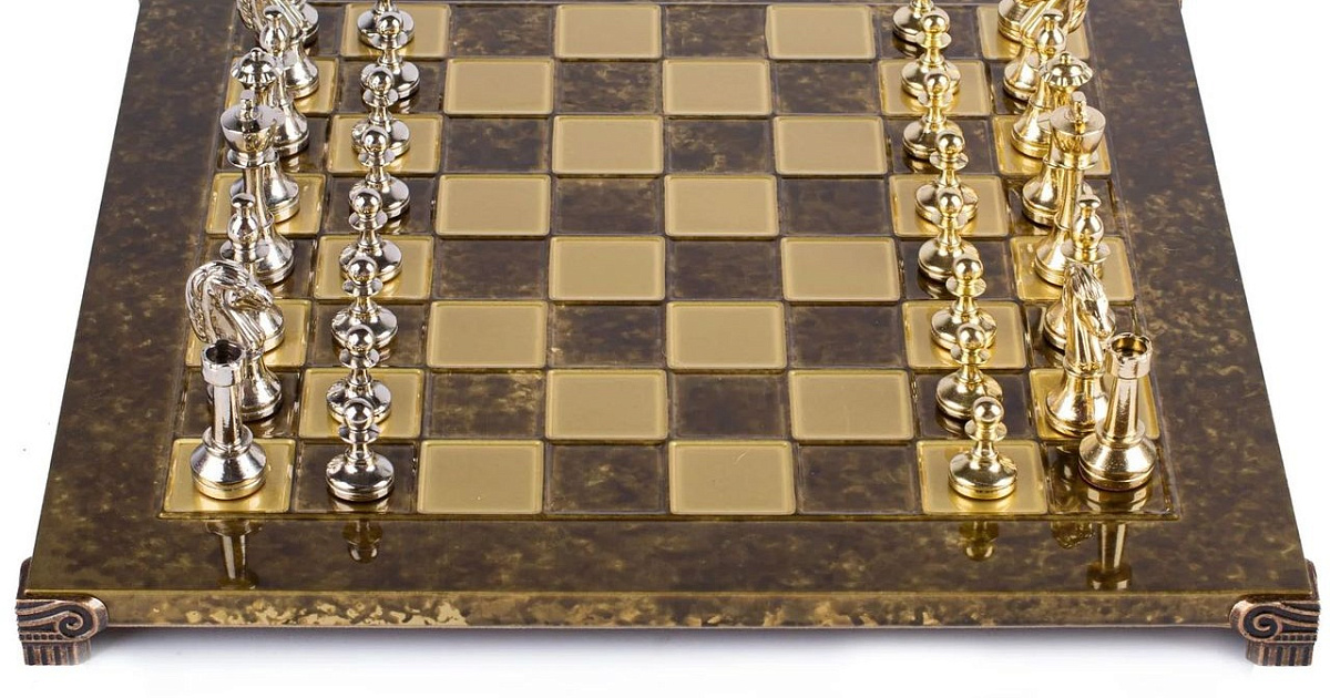 Ощутите элегантность и традиции классических металлических шахмат Staunton от Manopoulos. Этот набор среднего размера состоит из замысловато оформленных золотых и серебряных шахматных фигур на бронзовой шахматной доске размером 36х36 см, что является данью уважения вечному дизайну Staunton, почитаемому шахматистами во всем мире.