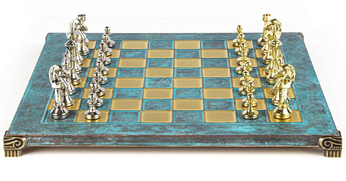 Ощутите элегантность и традиции классических металлических шахмат Staunton от Manopoulos. Этот набор среднего размера состоит из замысловато оформленных золотых и серебряных шахматных фигур на бронзовой шахматной доске размером 36х36 см, что является данью уважения вечному дизайну Staunton, почитаемому шахматистами во всем мире.