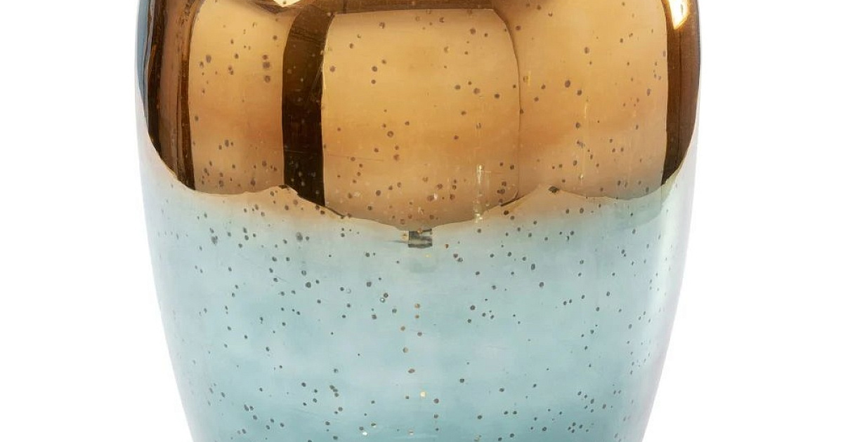 Мерцающая элегантность сочетается со средиземноморским колоритом: эта изысканная ваза сочетает в себе яркую бирюзу с благородными золотыми акцентами и излучает летнюю легкость. Отделанная вручную поверхность с мелкими крапинками очаровательно отражает свет и делает каждый образец уникальным. Будь то стильная сцена для засушенных цветов или выразительное сольное произведение, она привлекает внимание на сервантах, полках или боковых столиках. Особенно гармонично он смотрится в сочетании с натуральными материалами, такими как дерево или лен, привнося в дом нотку праздничного настроения.