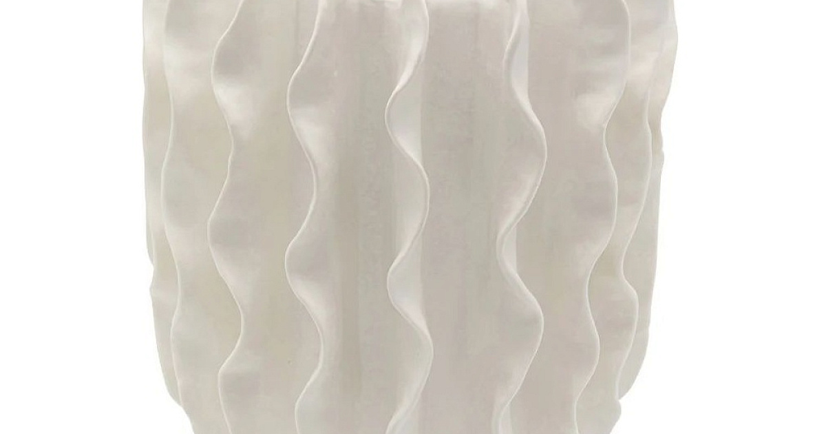 Белая ваза поражает своим необычайно изогнутым силуэтом.