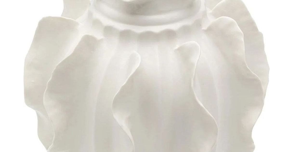 Изогнутая фарфоровая ваза белого цвета.