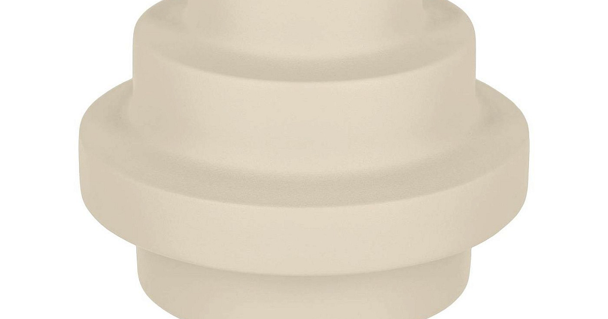 Форма вазы имеет сложную геометрию, состоящую из пяти приземистых цилиндров разного диаметра. Ширина нижнего (основание) – 10,2 см. Благодаря симметричному расположению ярусов, ваза устойчива как с цветами, так и без них. Чтобы исключить выбеливание цвета и царапины, вазу запрещено мыть в посудомоечной машине. Только ручная чистка без абразивов.